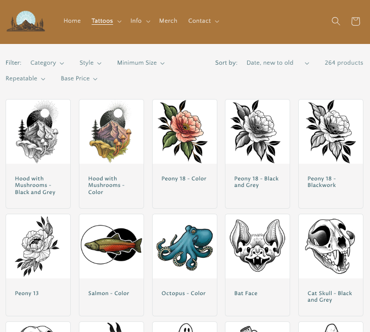 Browse my available flash, and choose the design you want. You can use the filters at the top to narrow down by category, style, price, etc, or use the search bar to search for a specific subject matter.