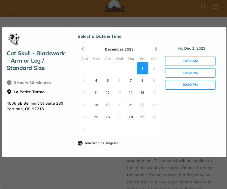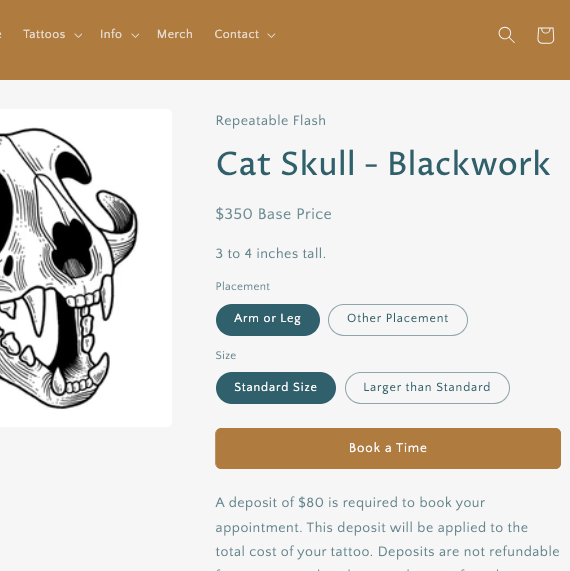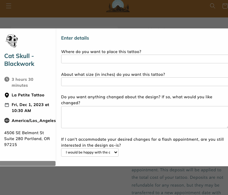 Choose the options that best reflect which size and placement you want. Then click "Book a Time."